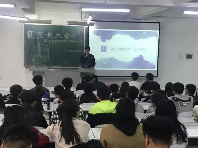 杜东航同学结合学校的规章制度,向大家详细介绍了我院关于寝室卫生检查方面的制度,并要求大家时刻维护优良的寝室环境。李濠宇同学为大家介绍学院“垃圾袋装化”的建设成果。曹名扬同学总结了最近几周学院查寝结果和个别寝室存在的问题,并提出整改意见。优秀寝室长代表胡灿昱与大家分享寝室建设与管理的经验和方法。