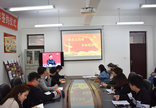 会上,大家观看了习总书记在北京大学的讲话视频,并学习了讲话内容。讨论过程中,同学们踊跃发言,学生党员黄鹏向大家荐读《习近平的七年知青岁月》,建议大家多读书,脚踏实地,求学问,练真本领。院团委副书记张超凡同学表示我们是“两个一百年”的见证者,更应该是参与者,在这美好的时代,我们青年人应敢于追梦,勇于圆梦,不负习总书记嘱托,继承五四精神,肩负起国家和民族的希望。
