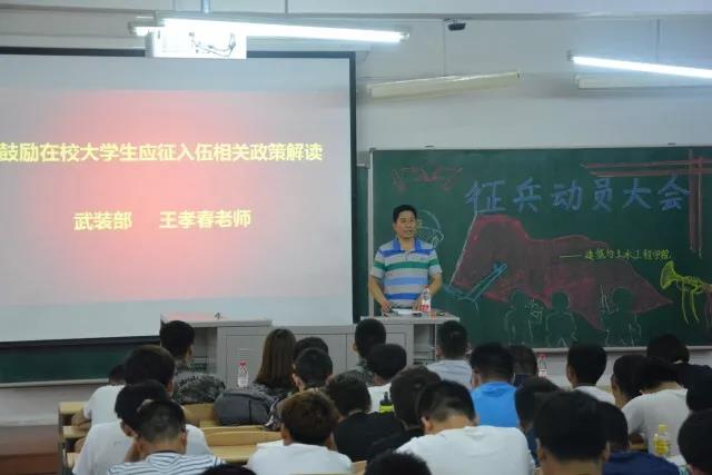 为切实做好征兵工作,建筑与土木工程学院于5月16日在教学楼A-112召开了2018年征兵动员大会暨优秀退伍士兵事迹报告会。学生处武装部王孝春、学院党总支副书记、副院长任大林、全体学生工作干部出席了本次大会,会议由赵骏倢主持。
