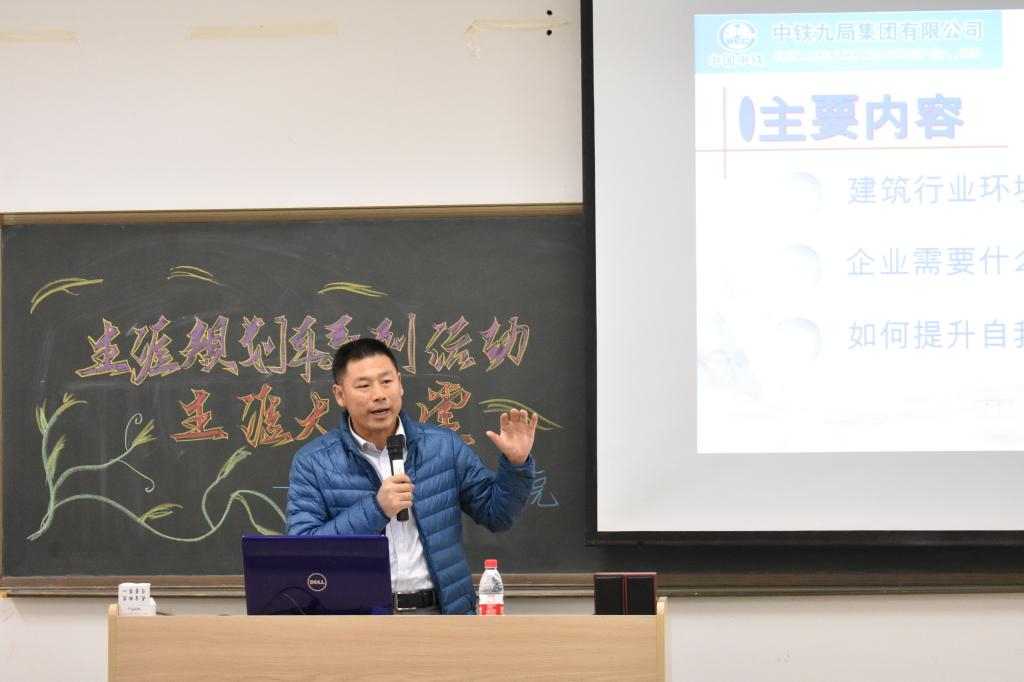 为使新生了解专业信息,规划生涯发展,11月17日晚,bet365比分网于建工楼205举办“生涯大讲堂”生涯规划讲座。本次生涯大讲堂邀请到中铁九局人力资源处林健科长担任生涯规划讲师。团委书记、17级辅导员李青山老师出席了本次活动。