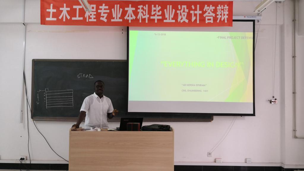 6月13日上午,建筑与土木工程学院召开2018届土木工程专业留学生本科毕业设计答辩,共有12位本科留学生毕业生参与答辩,盛国华老师作为答辩主任委员主持了本次会议。