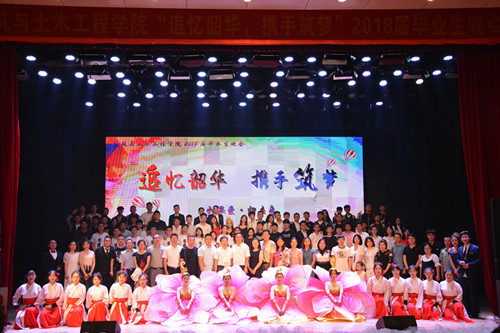6月21日,建筑与土木工程学院“追忆韶华 携手筑梦”2018届毕业生晚会于工大会堂拉开帷幕。招生就业处处长李庆丰,校团委书记吕丽莉,招生就业处副处长韩永强,学生处副处长田玉宝,学生处新疆内派教师张励君、康红霞,建筑与士木工程学院领导班子、全体学生工作干部、教师代表及2018届全体毕业生出席了晚会。