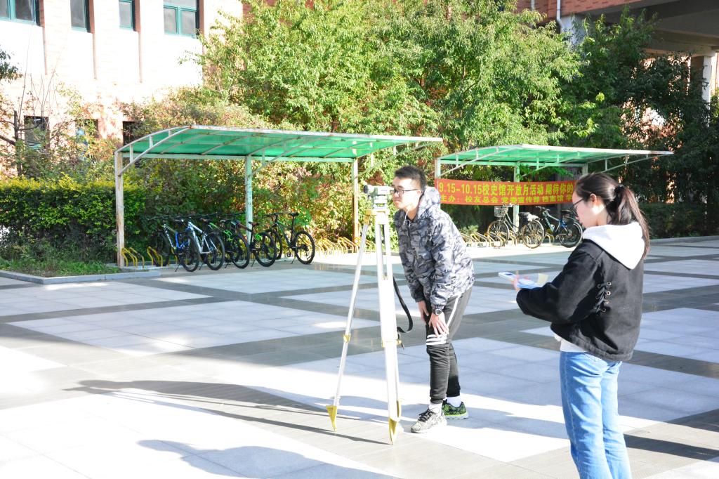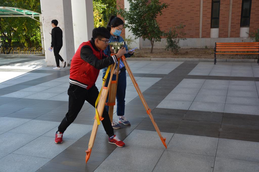 10月11日下午14:00,比赛在公共教学楼前正式开始。现场气氛活跃,比赛过程中所有参赛选手争分夺秒,各小组成员之间相互配合,团结合作。为了抓紧时间,同学们在测量过程中都是跑着进行,最大程度地减少了时间的流失。比赛指导老师认真监督每组组员,严格按照比赛规则对每组参赛队仔细评分。历经2个小时,比赛圆满结束。