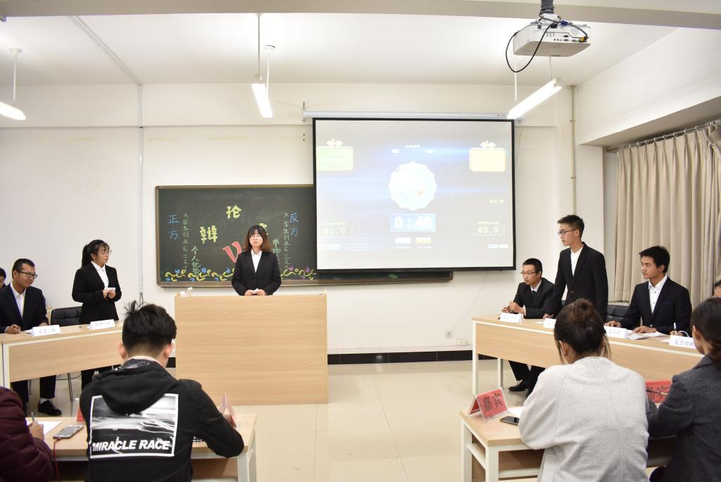 半决赛第一场于晚六时整准时开始。正方是由土木工程1601班和土木类1701班组成的联合代表队,反方是由土木工程1604班和土木类1704班组成的联合代表队。双方代表队就大学生创业应立足于何处展开了激烈的辩论。最后,正方以3比2的优势赢得了本场的胜利,顺利晋级决赛。
